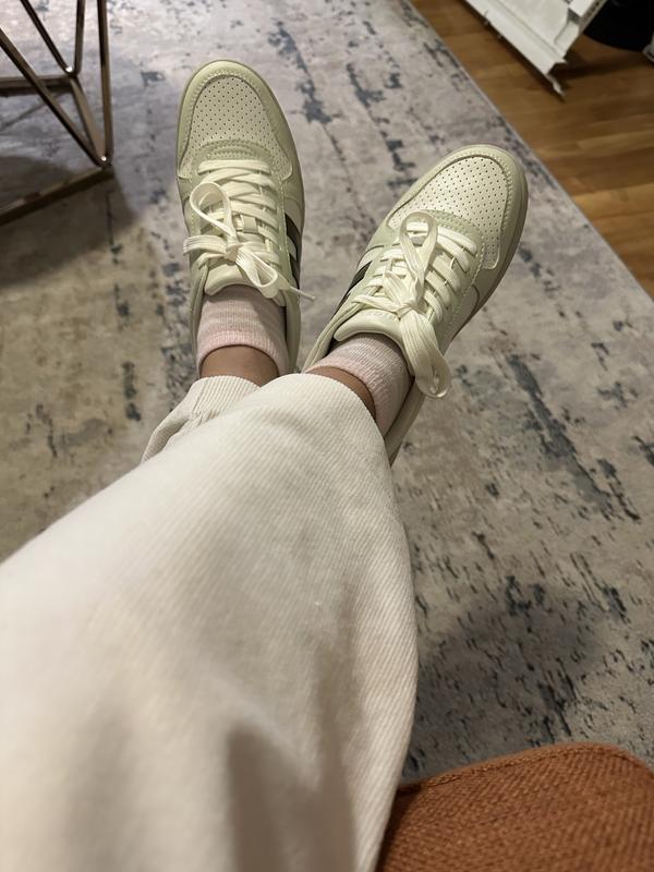 I read the reviews and I listened. Good thing I did, I usually wear a size 61/2 in shoes, boots but in Uggs size 6, I bought a 6 and they’re even a little loose, even wearing regular socks. Maybe because they’re wide but I love them! It’s a perfect neutral color to wear with black, white, and beige even blue. Gorgeous sneakers! And Bonus, I got on sale.