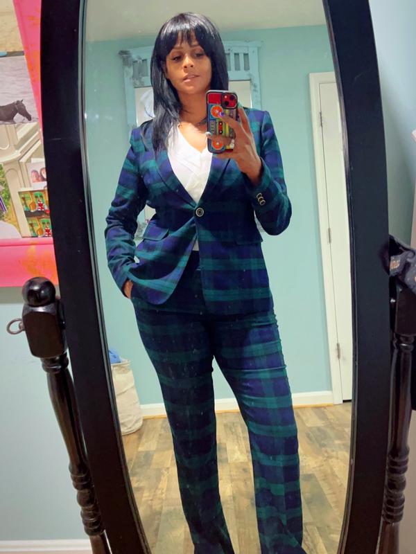 I was really excited to receive this jacket and matching pants. Well made. Plaid is bold but still work appropriate in an office setting. Jacket way too small in bust and shoulders. Not even close to fitting. Pants loose in the waist, normally my problem area, but didn’t have enough room in the thighs to drape properly. Sadly going back.
