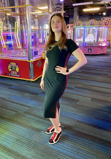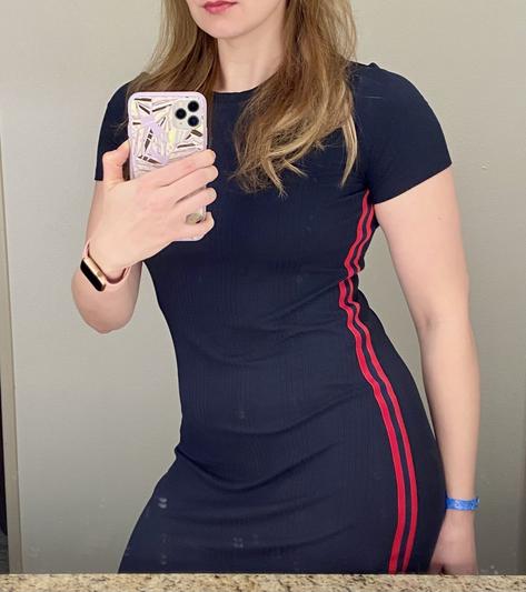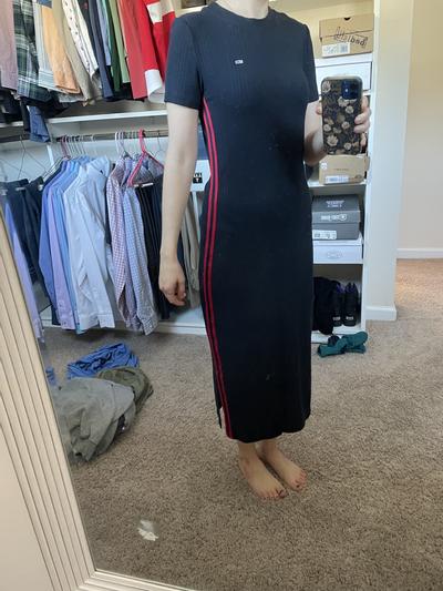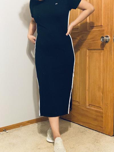 This is the third color I have purchased in this dress. It is an easy fit and comfortable for summer. I wear it with sneakers.