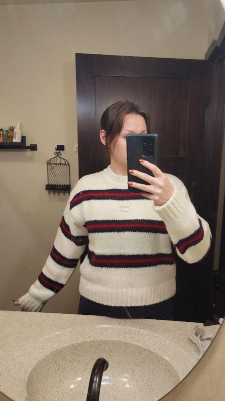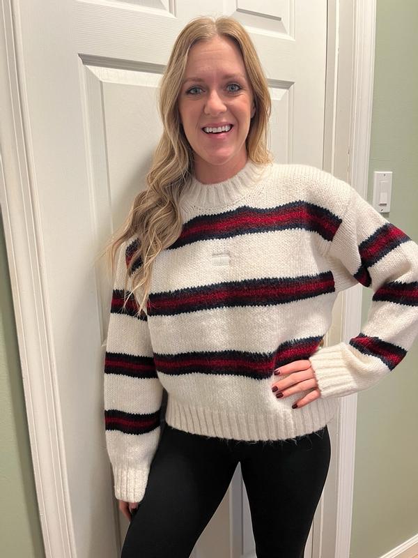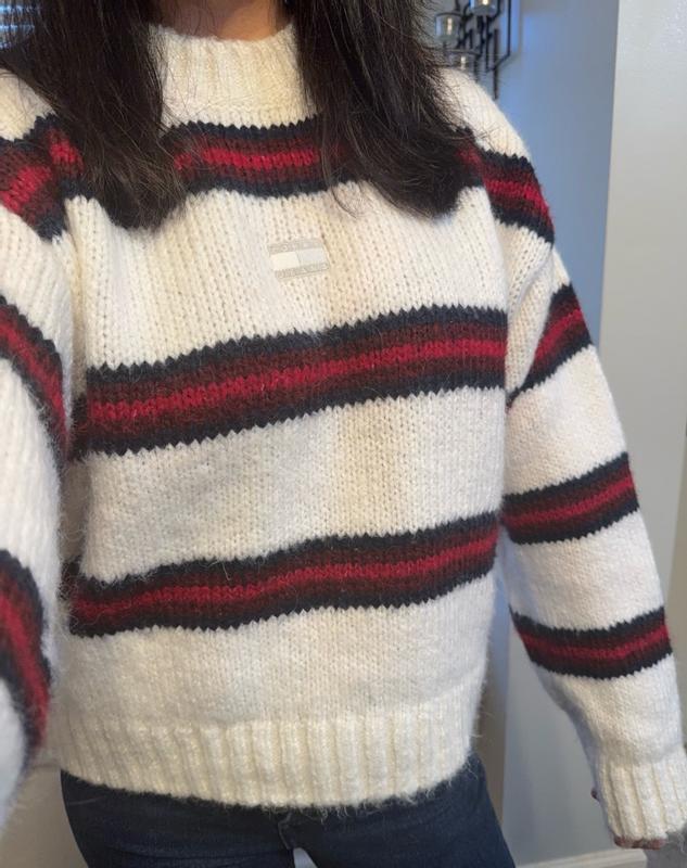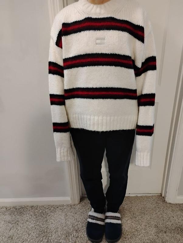 I received the Tommy Hilfiger badge stripe fluffy sweater free from influencer to do a review on. This sweater is absolutely beautiful. It is very lightweight but very warm. It is very well-made and fits true to size. I wore this all day at my Christmas party and received many compliments. I would recommend this brand of sweater to all of my friends and family.