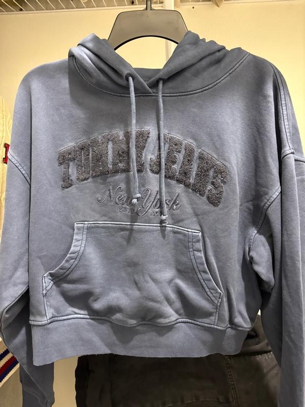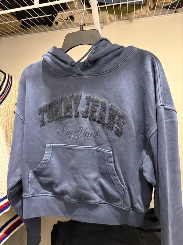 This Tommy Jeans hoodie is perfect for casual wear. I’m wearing a size small. The vintage-style washed blue color gives it a worn-in look, and the embroidered “New York” lettering adds a nice touch. The material is my favorite kind for a sweater—it’s not overly soft but feels really durable and resistant to pilling, making it good for long-term use. The slightly cropped fit is both stylish and comfortable, while the hood is roomy, and the ribbed cuffs and hem help keep warmth in. Overall, it’s a cozy and versatile piece, great for layering or lounging. Definitely worth it.
