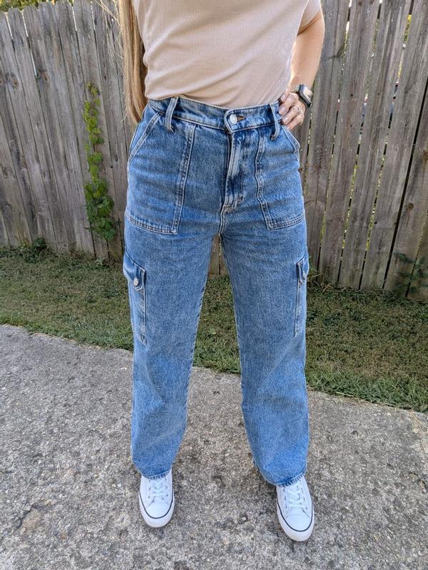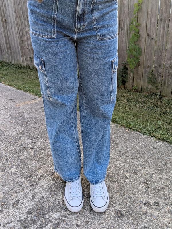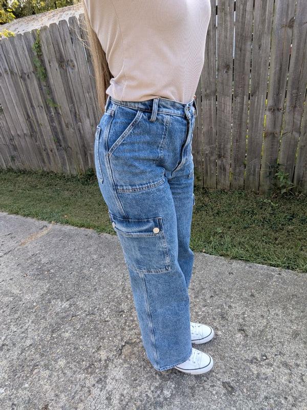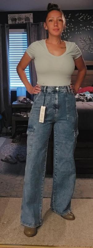 I love these cargo jeans. They're super comfortable and fit true to size. I'm a little under 5'4 so I did have to fold them a little but they're still super cute. The quality of the fabric is amazing and durable.