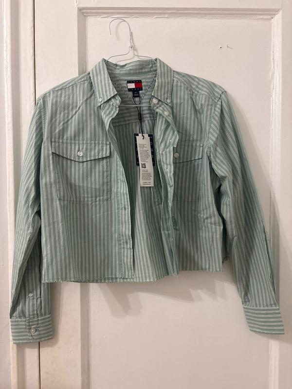 Loving this Tommy Hilfiger cropped crest shirt! This shirt has all of the thoughtful details thar you expect from a high end brand. Everything from the crest on the front of the shirt to the loop on the back was well thought out. While this shirt is a little boxy and the sleeves are too long on my petite frame, I really like the way this looks with the sleeves rolled up. This can be styled with high rise pants or a skirt. The shirt itself is a light weight 100% cotton so its suitable for 3 out of the 4 seasons of the year. It is very comfortable and is cropped at just the right height for me. The cotton material washes well, just follow the instructions and button it up and turn it inside out. After washing I steamed the shirt and it turned out perfect! Overall, really loving my new Tommy Hilfiger shirt and can't wait to see how I can style it through the different seasons.