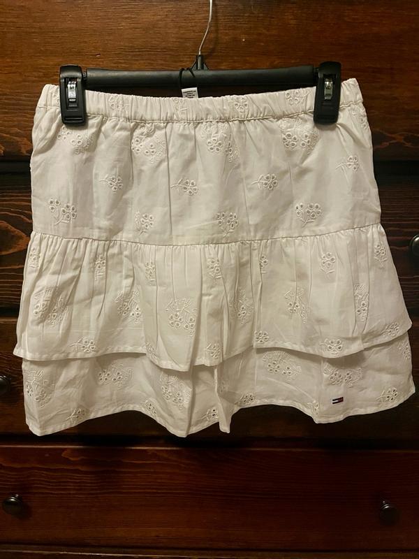 The eyelet embroidery on this Tommy Hilfiger skirt is so pretty. The skirt is flowy and fits beautifully. It can be dressed up or down and I know I will always be comfortable in it.