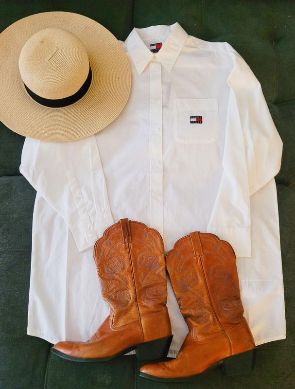 I love how versatile this Tommy Hilfiger oversized shirt dress/button-down is! Throwing on a belt instantly transformed it into a chic dress, perfect for a more put-together look. I also enjoyed wearing it open over my spring outfits—it added such an effortless, stylish touch. Definitely a go-to piece for easy, versatile styling!