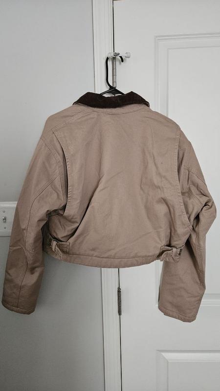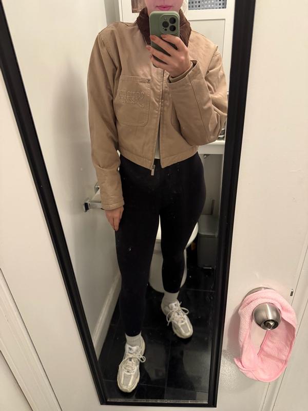 This jacket ended up being much warmer than I expected! It’s thickly padded and comfortable in mid 50s weather with just a light tshirt. It has a cute cropped fit that ends right at my waist. It’s perfect for a casual fall look.
