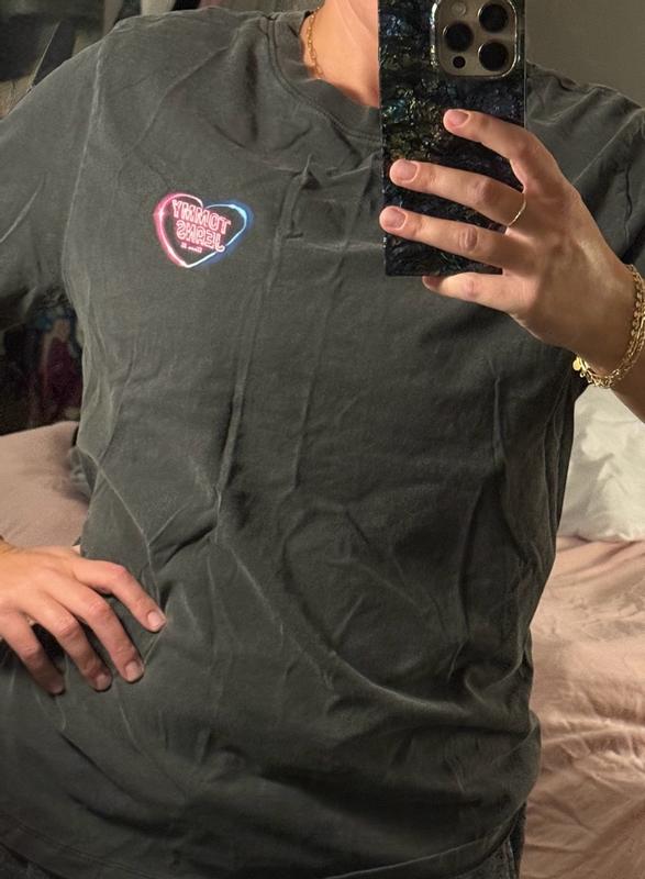 This is a very cozy tshirt. It’s got that “lived-in” feeling - which I adore because I hate super stiff tshirts. It’s got this awesome puffy like graphics and words - very funky and 90’s-esque.