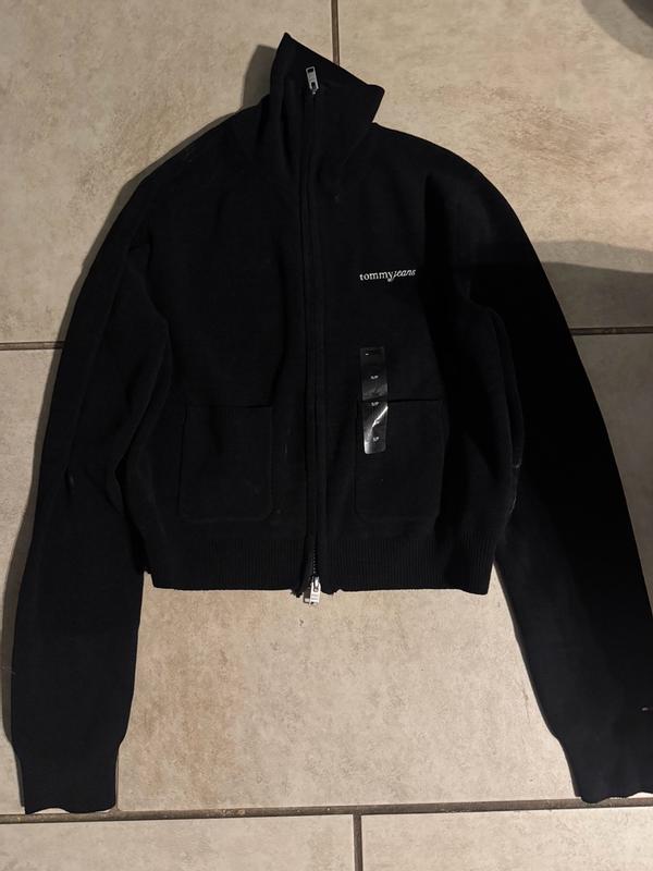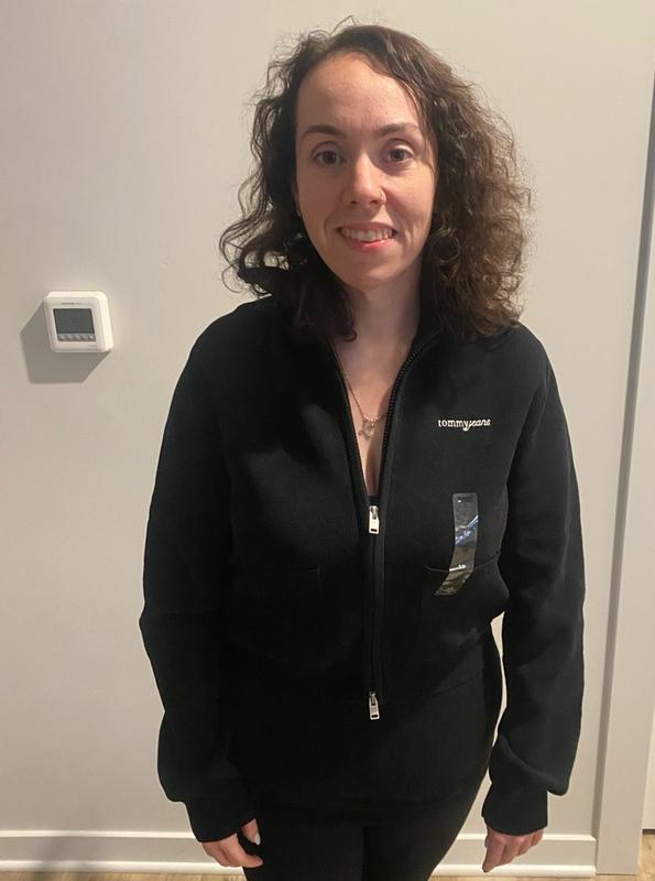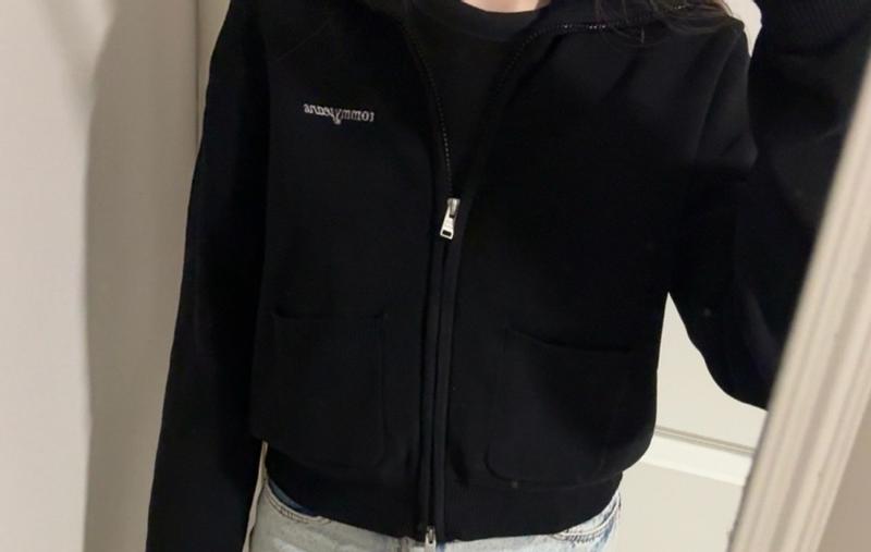 This sweater is so cute! The material is very thick and soft and SUPER good quality. It fits perfectly and I love the pockets, very cute detail. it’s not too cropped which is great and the thickness of the jackets keeps me nice and warm! It’s also very structured and I like the fact that the zipper opens from both ends so you can style it in many ways.