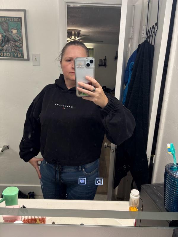 This Tommy Hilfiger Cropped Bling Hoodie is too cute. It goes with everything, and the bling flag is my favorite feature. I have received so many compliments on this hoodie. It is stylish and very comfortable. The sizing and fit are perfect. This is a quality piece that will last a long time. I'm so excited to style it with different pieces of my wardrobe.