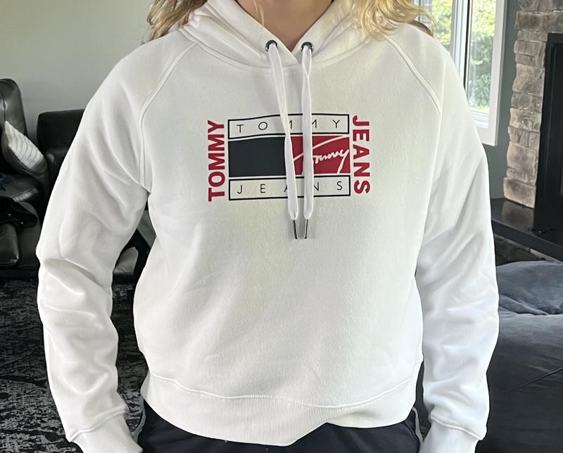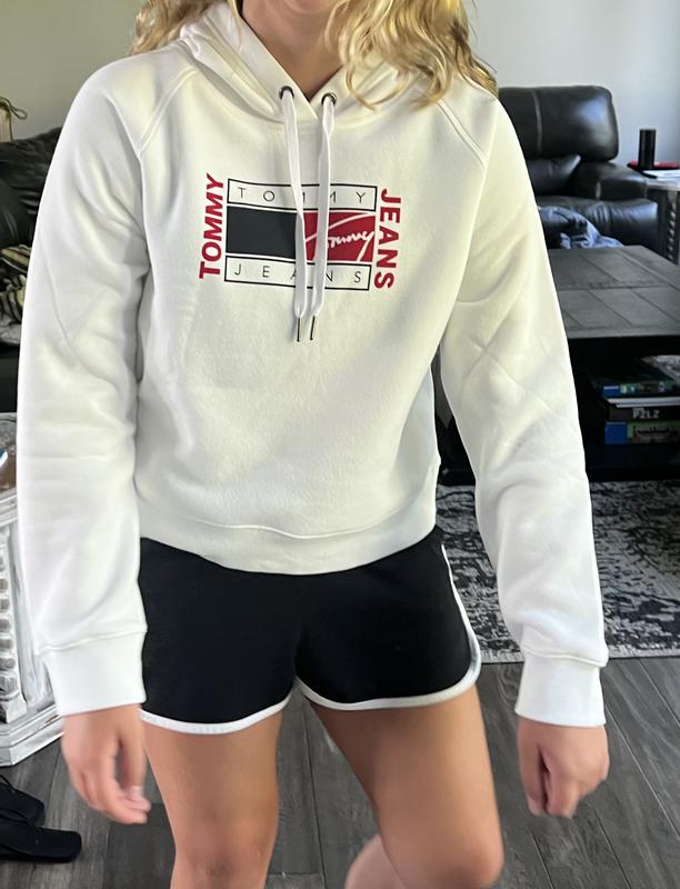 Tommy Jeans Womens Fleece Cropped Flag-Graphic Pul