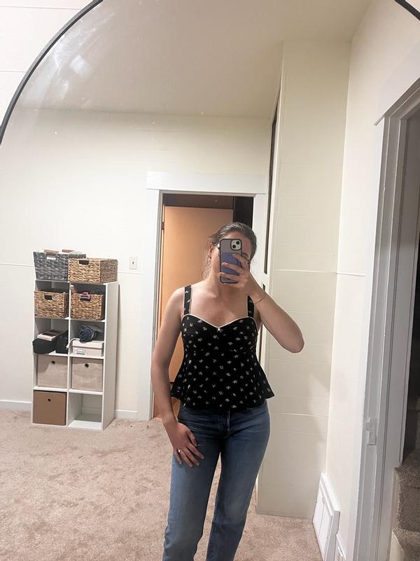 Super cute, well made. You could totally dress this with a cute jacket and wear it in the fall as well as spring and summer. Paired it with black pants but would be super cute with jeans or dresses up with a skirt. Got it in a small and I would say it’s true to size.