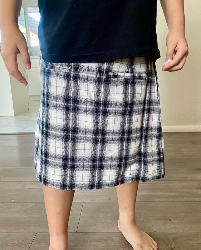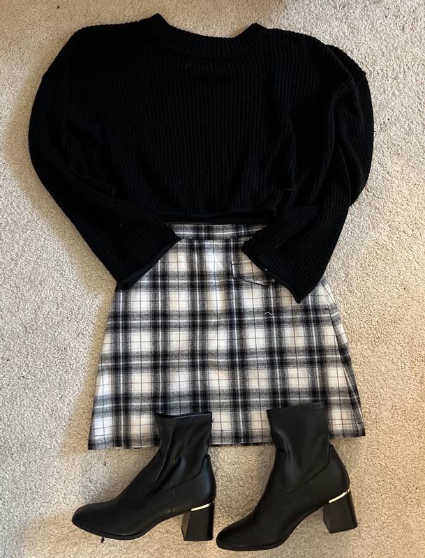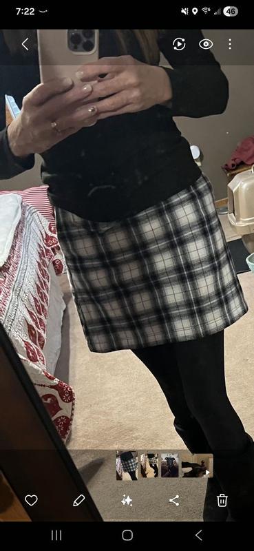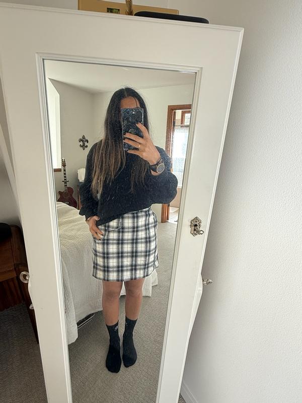 This is the perfect fall skirt. And it has pockets 🙌🏽 the length is also perfect, right at mid-thigh. I’m 5’3”, 125 lbs and I got a size small. It fits perfect. The material is flannel, and cozy soft. I know I’ll be wearing this a lot with a puffer vest and boots!
