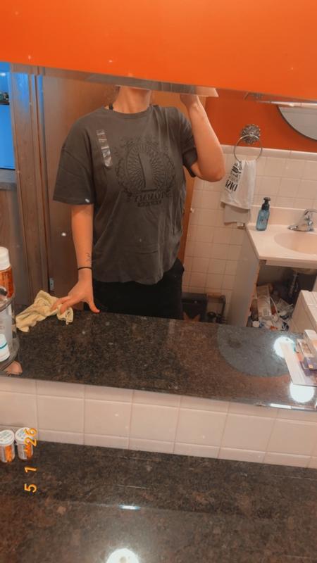This tee is made from a high quality, thick material that feels super cozy and soft. It has a nice oversized fit that is super comfortable. I like that the neutral gray color makes it easy to incorporate into any outfit.