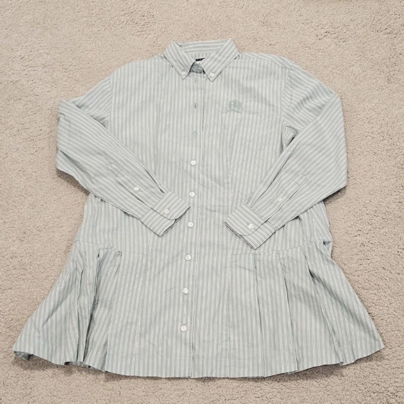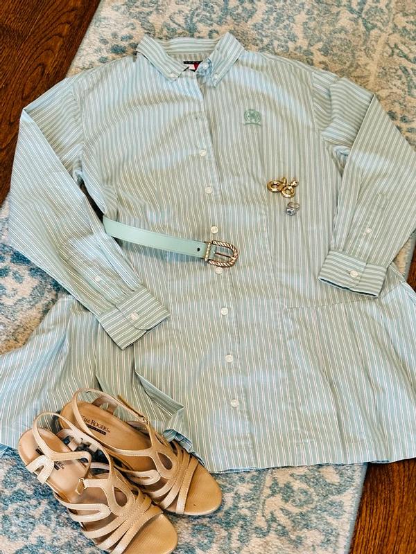 This Tommy Hilfiger shirt dress is beautiful! It’s made of 100% cotton, so it feels soft and comfortable to wear. I’m 5 feet tall and usually wear sizes between XS and S, and this shirt dress fits roomy. It’s also petite-friendly, the length sits just above my knees, although the sleeves are a bit long on me. I love the button-down striped design; you can dress it up or down with boots or sneakers for different looks.