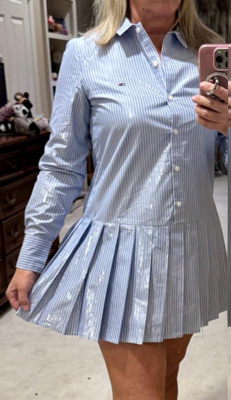 Tommy JeansWomen's Pleated Sparkle Collared Shirt Dress