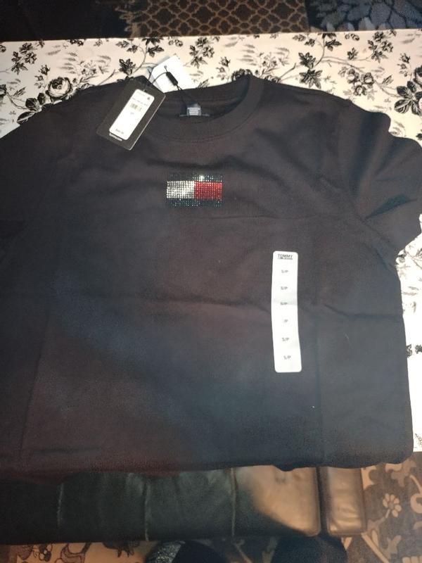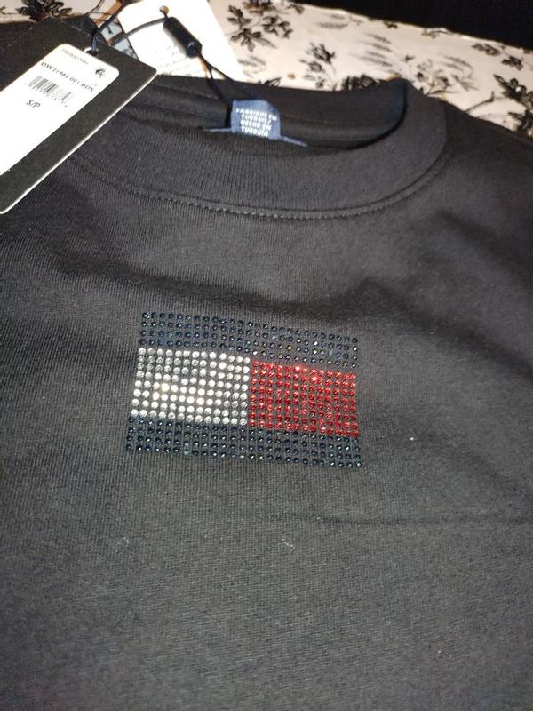 The Tommy Hilfiger party flag t-shirt is absolutely so cute! The flag is super sparkly and glistens when the light hits it. True two size great fabric I've gotten so many compliments on it