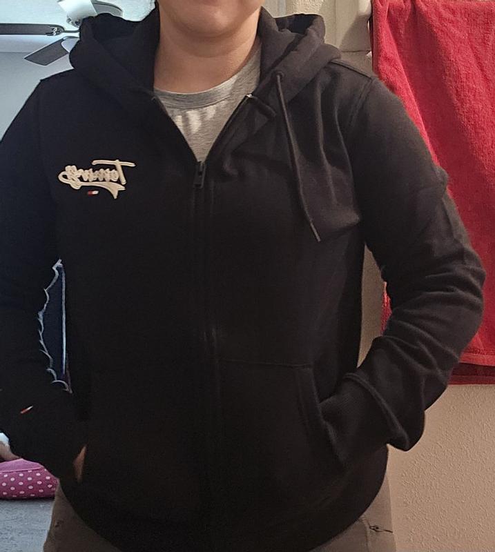 This zip up hoodie is so cute and stylish! I received a size Small. I was a little nervous because I bounce a lot between Small & Medium and was not sure if it would fit me tight. It is definitely more of a relaxed fit. I am able to zip it up and feel comfortable in it and not squished. I wore it on a day where the temperature did not reach higher than 65 degrees and it kept me warm. It is super soft and made out of at least 50% regenerative cotton. (Regenerative cotton is grown using farming methods that seek to improve soil health, watersheds and biodiversity. *Excluding trims). I recommend this zip up hoodie to anyone that needs an in between coat while transitioning through the season!