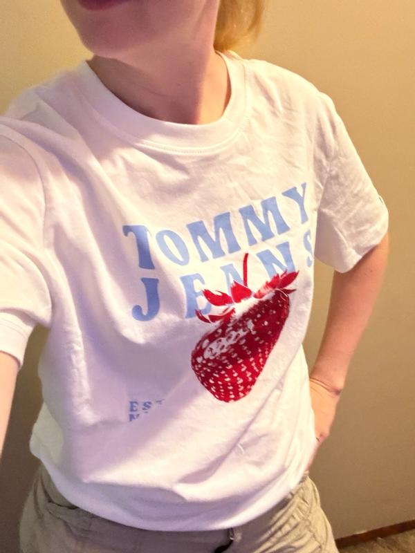 This tee is super cute. It’s a nice casual shirt to put on with a pair of jeans I love it. The strawberry is super cute! I love love love Tommy Hilfiger!