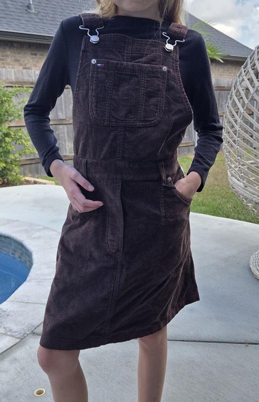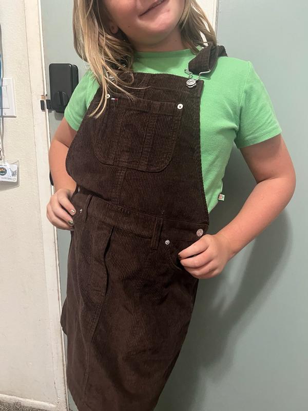 This corduroy jumper fits my 10 year old perfectly! She said it's super comfy and easy to put on! She loves all the pockets and it seems well constructed!