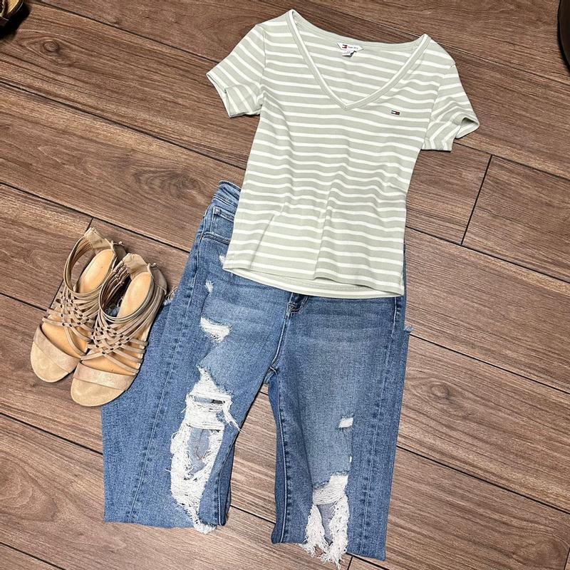 I’m so excited about this super cute Tommy Hilfiger TJW Slim Essential Rib V SS top. It’s super cute, versatile and fits wonderfully. It is made of very durable fabric and is super comfortable!!