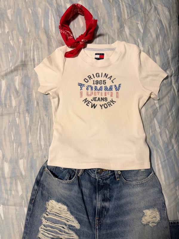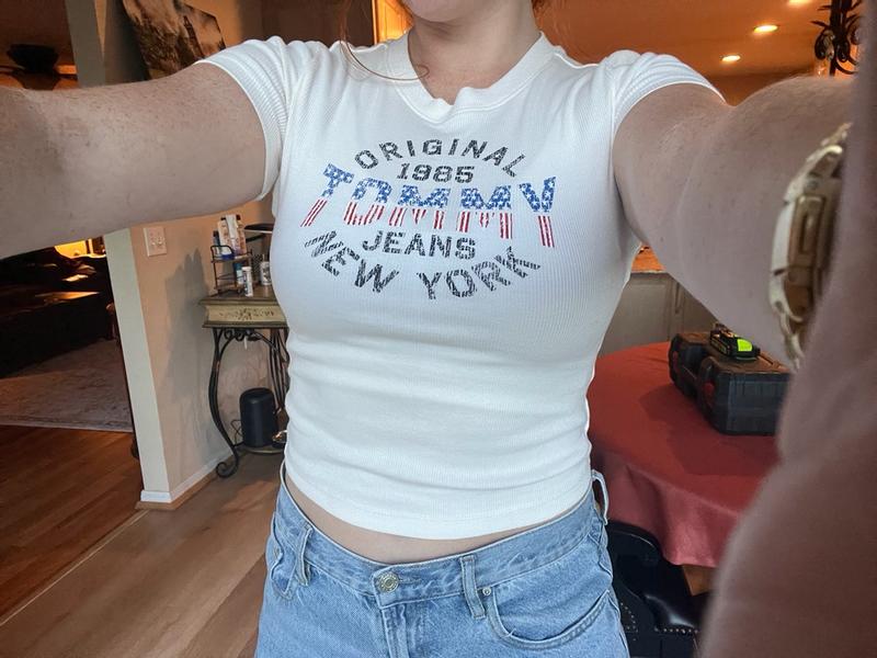 I received the product for free from Influenster and Tommy Hilfiger in exchange for my honest review. Obsessed with this vintage inspired crop 🤍✨ The fit is everything — soft, flattering, and gives that effortless “off-duty NYC” vibe. I’ve been living in it lately with joggers. So comfy but still looks cute and put together. Totally a staple for chill days and coffee runs ☕️🖤
