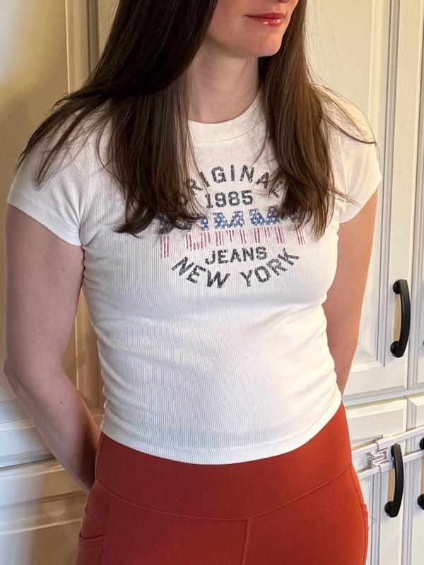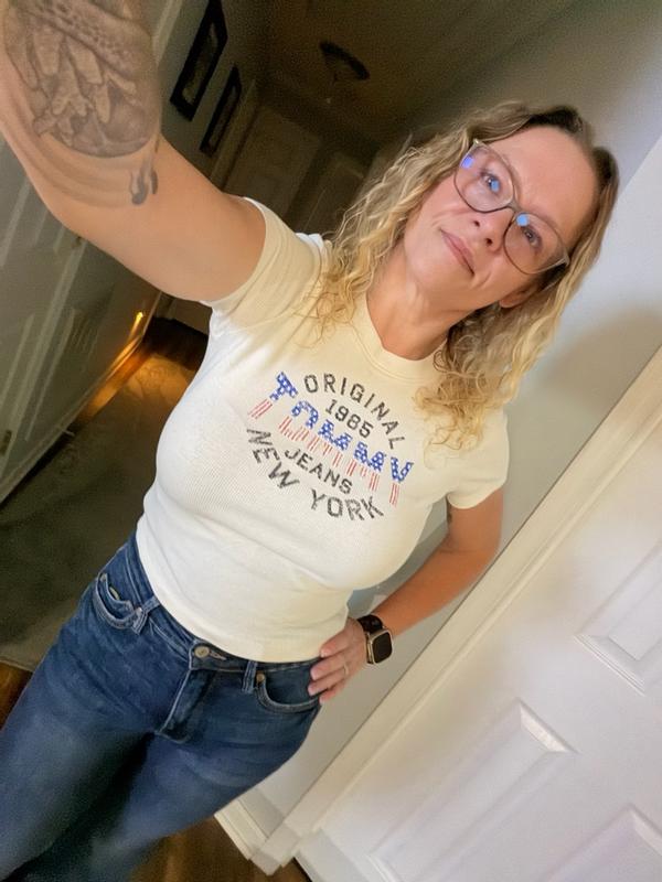 Women's Slim-Fit Ribbed Americana Graphic T-Shirt