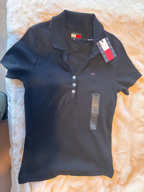 Women's Slim-Fit Ribbed Polo Shirt