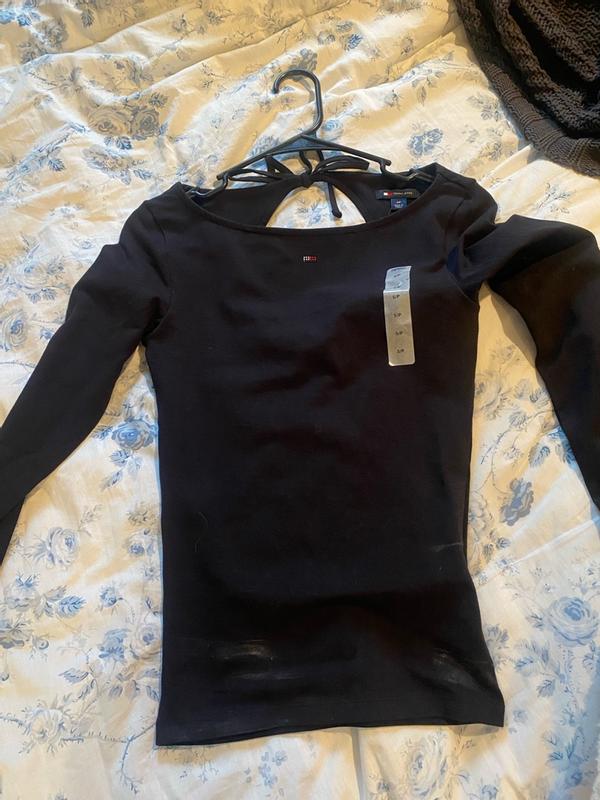 The cutest top ! I love the back is a tie back which adds a little something to it and then the Tommy symbol on the front is so cute too and it’s not too big so it adds just a little sparkle
