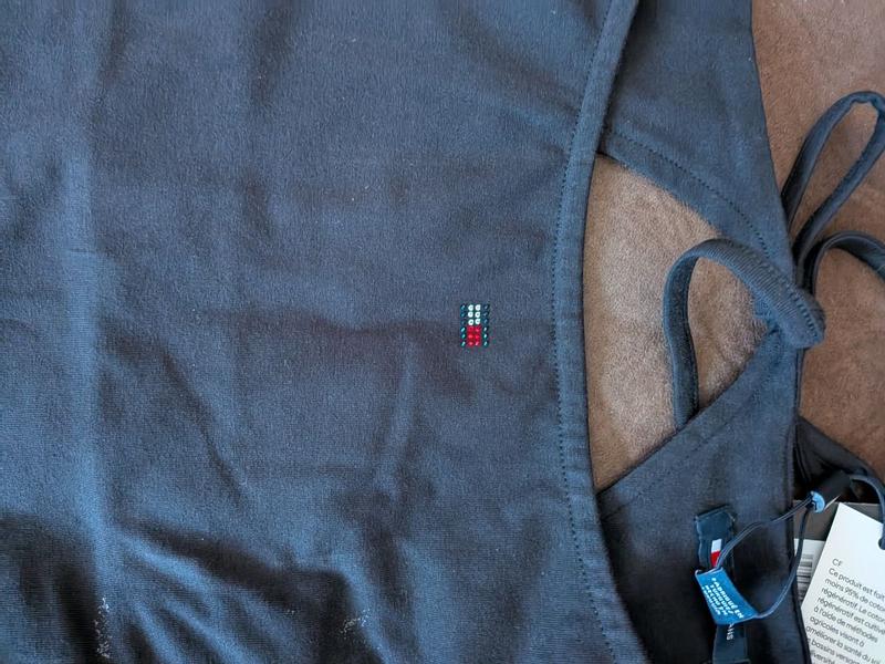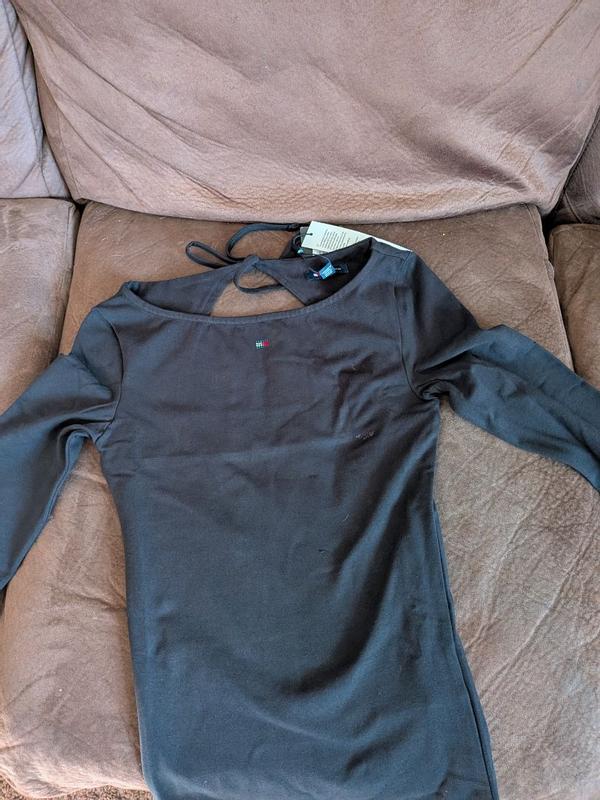 I love this Tommy Hilfiger jeans shirt! The quality is excellent, and it’s very well made. The fit is flattering and waist clenching, giving it a nice shape. It’s an off shoulder style that shows just the right amount of shoulder. It’s subtle but stylish. I tied it in the back, and it looks really cute and put together. Definitely a great addition to any wardrobe!
