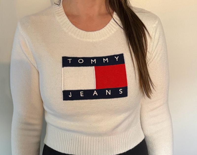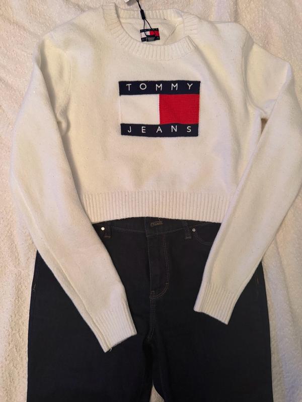 This Tommy Hilfiger sparkle flag sweater is so soft and perfect for the holiday season. The subtle sparkle adds a festive touch without being overdone, and the cropped length is just right. The quality feels great and very comfortable.