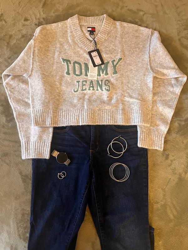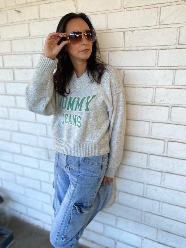 The Tommy Jeans V-Neck Sweater is soft, comfortable, extremely fashionable and pulls on easily. It’s designed with a logo on the front, a ribbed neck, cuffs and hem. It sits at the hip and pairs nicely with jeans or trousers. It’s made with high quality cotton fabric and will keep you warm during the cold weather months. This sweater fits me perfectly and the inside lining feels amazing and doesn’t irritate my skin . I absolutely adore the style and color. It can be machine washed, but I don’t think I would put it in the dryer.