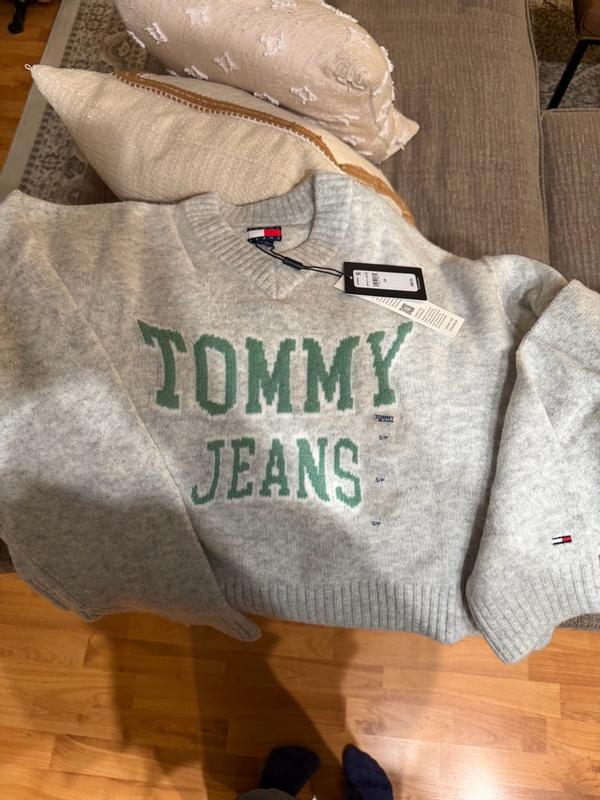 Im wearing a small. This sweatshirt is lit! So soft so soft..long sleeves ( hard to find, I have long arms) . Not itchy at all. love the crop fit! I got so many compliments the first day I wore it!! This sweatshirt is made with at least 50% recycled acrylic. The long tag on the inside of shirt bothered me a little. Might cut it. Machine wash cold do NOT put in dryer. Lay fllat to dry. Or dry clean.