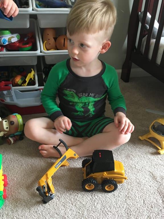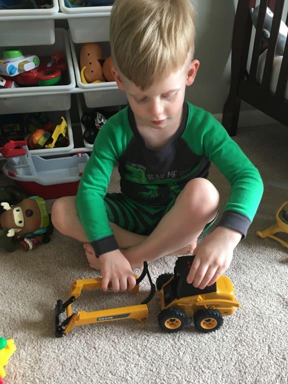 I was super excited to see the smile and excitement on my son's face when he saw and started playing with his John Deere Big Farm Skidteer set.it was fun, he was screaming " Mom see" the sounds it make on each button press was so thrilling for him, thanks John Deere for this amazing toy.