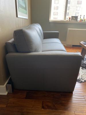 This is a beautiful, gray leather sofa! It looks amazing in my condo and is very comfortable. I love it!