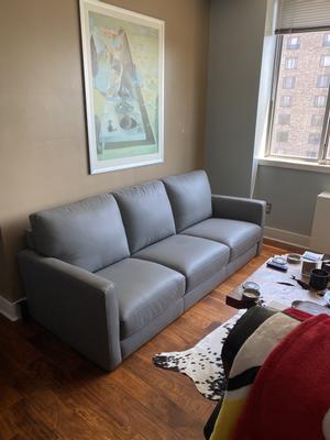 Lovely sofa. Firm but comfortable. Love the grey color in my living room.