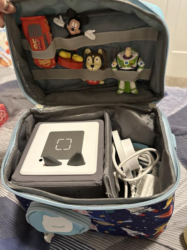 Great to take our box, headphones and figures in the go. Love the speaker hole so we don’t have to take it out of the bag and can still use it.