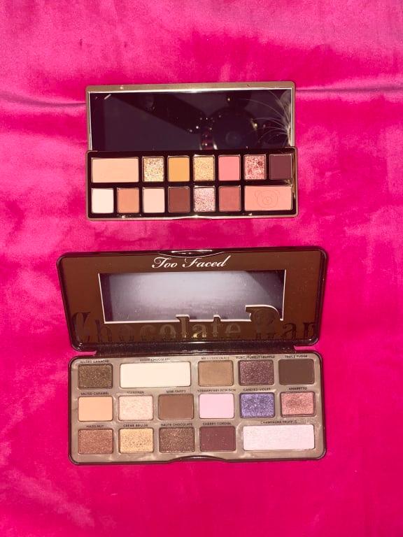 These colors are so beautiful, the packaging is immaculate. I'm absolutely obsessed with how darling this entire collection is! The pallet is small when compared to example: chocolate gold pallet. However, the colors are highly pigmented. I barely touched the color for application. Buttery smooth, ultra light weight & highly pigmented...but isn't that why we buy Too Faced ♥️ So satisfied with this purchase