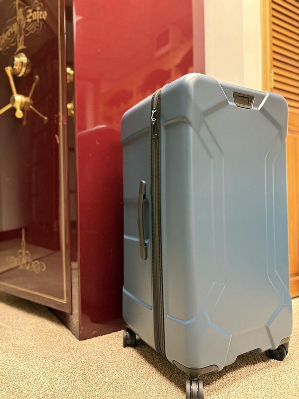 This was our first trip with the big dog of travel cases. The wife packed clothing, shoes, and purses for two weeks (16 days) in this trunk. Normally she packs two large suitcases. It rolls effortlessly through parking garages and airport terminals. After being loaded by drivers, bellmen, baggage handlers at four hotels, a cruise terminal, and three airports, there’s not a scratch on the exterior. I really like the dark green color, it sets it apart from the sea of black plastic sliding around the conveyor belt. It will also match a few of my next new bags. I may even buy another trunk for myself! This was a winner of a purchase that makes me She’s looking forward to taking the trunk on her next trip.