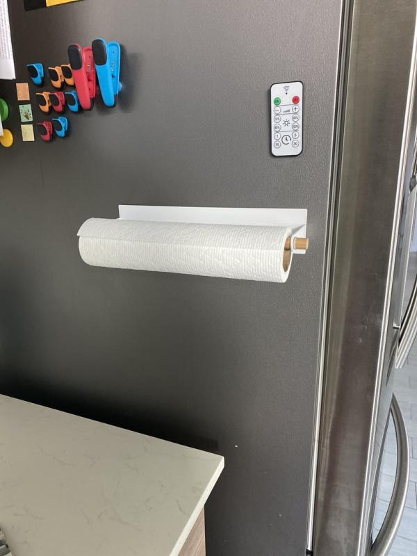 This paper towel holder can stick to any metal surface easily, to maximize kitchen space and keep paper towels within easy reach.