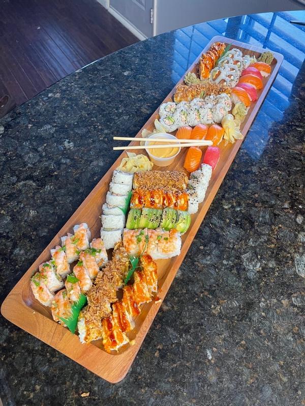 This is perfect for picnic table you can set up a beautiful arrangement for whole family. I love the size and quality of this wooden tray perfect for get together and party. It is so beautiful and luxurious i will definitely buy in more sizes and recommend to others.