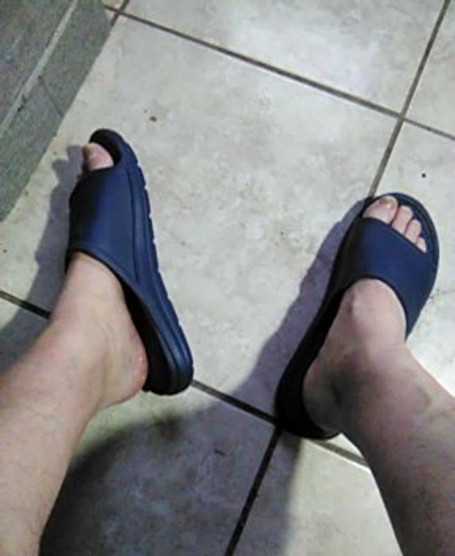 Just got the navy blue slides. Love the springy material. Very comfy. They look good too. Definitely recommend.