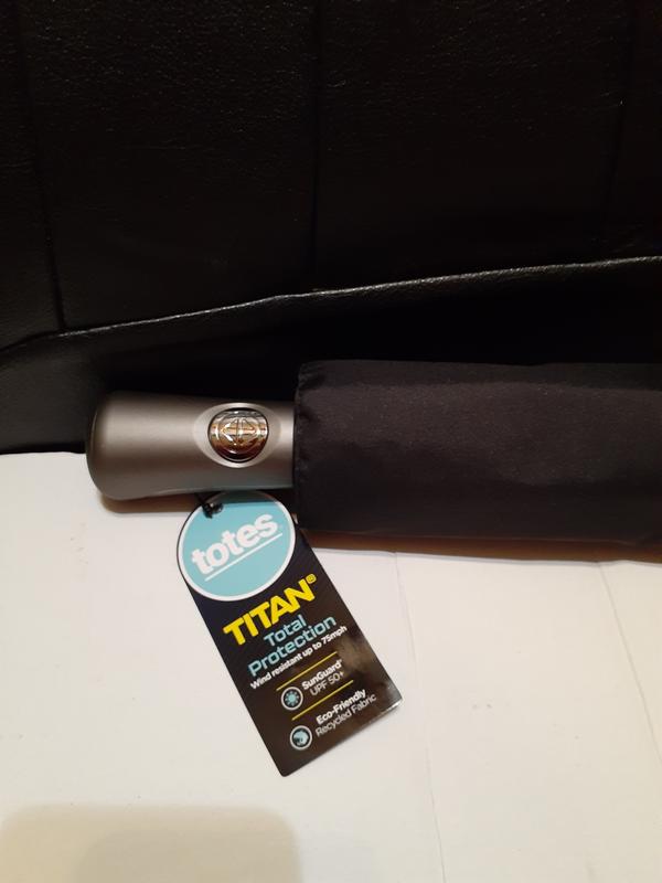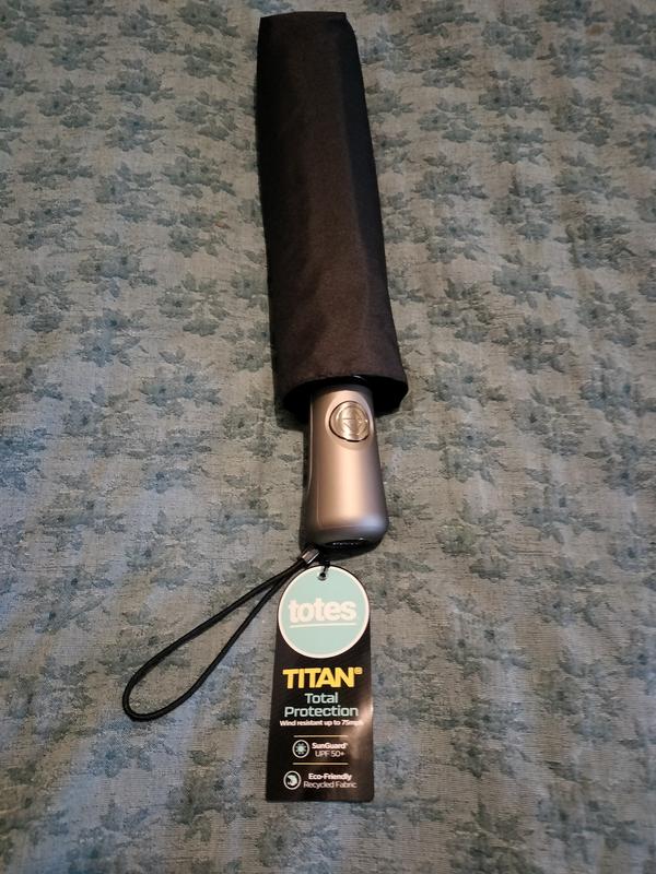The Totes Total Protection Compact umbrella is the most durable, sturdiest umbrella I have ever used. It's such a high-quality umbrella that I can't believe I went years with other flimsy ones. The sturdy; windproof frame reduces the chance for umbrella inversion and withstands outside winds up to 70mph! But there's more. It also can be used for sun protection, with the sunguard sun protection blocking 98% of harmful UV sun rays – UPF 50+ rating. I've never heard of such a thing in an umbrella. It also has an Extra Large 60-inch canopy that is vented for reduced wind resistance and is large enough to cover 2 people. I also like that it auto opens with the touch of a button, so I can keep one hand free. What's also really cool is that it's made through an eco-friendly manufacturing practices.