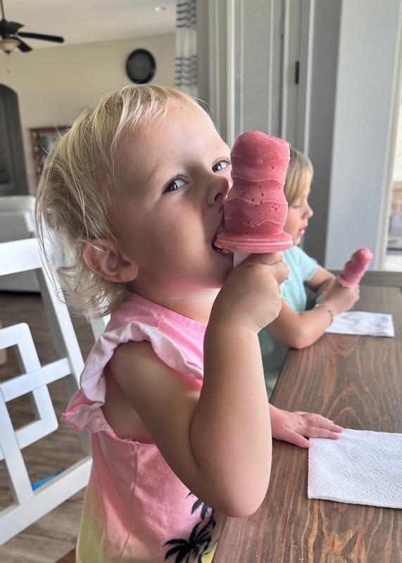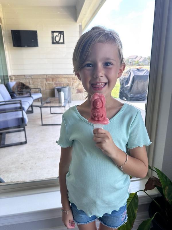 These are so cute and really easy to use. You can use your kids favorite juice or kool aid to make these pops. Ten the mold is really easy to clean. My kids loved to make them and then eat them.