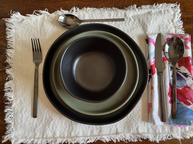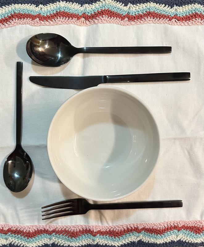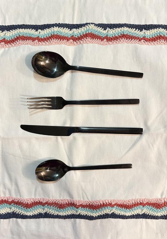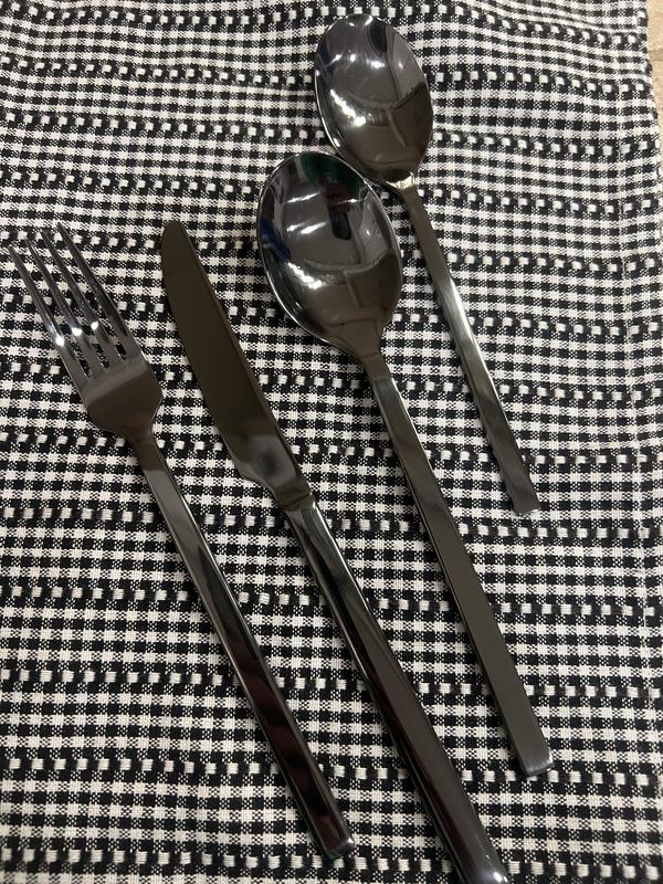 I love the 16 pieces dinnerware set, I wanted to try the black color because it’s not a common color for silverware and absolutely no regrets, it looks elegant, very well made and modern. Seems really good quality of stainless steel material they are heavier that the regular silverware that I have at home, the dinner spoons are longer and heavier than the forks and knives, according with the package it is dishwasher safe but I prefer hand washing.