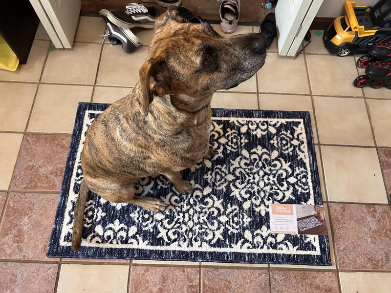 This scatter rug from Town & Country Everyday brings a touch of old-world glamour to modern sensibilities, with a low-pile, sewn-on fringe on both short sides and a latex backing to ensure it stays in place. It is easy to care for; I would recommend vacuuming with the beater bar off, as well as spot-cleaning or washing on a gentle or short cycle to prolong its life. It's well-suited for almost any area of the home, but I have found its ideal spot in the kitchen under my pet bowls.