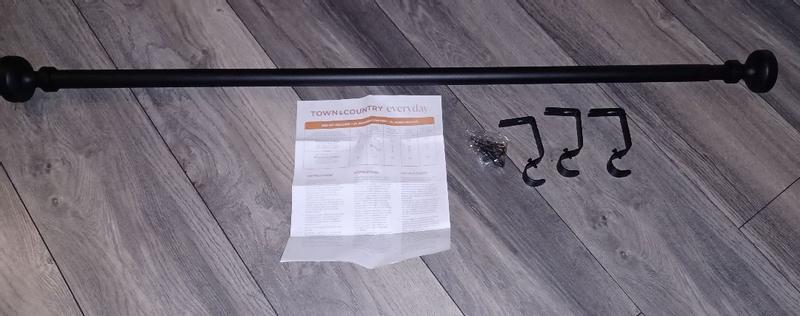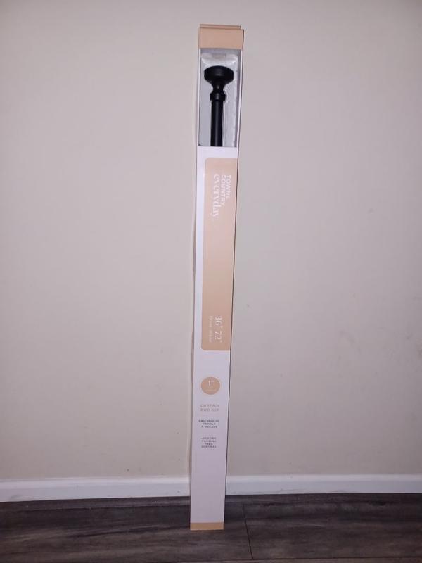 TOWN & COUNTRY EVERYDAYTOWN & COUNTRY LUXE Modern Rounded Cap Single Curtain Rod and Finial Set, Adjustable Length 36”-72”