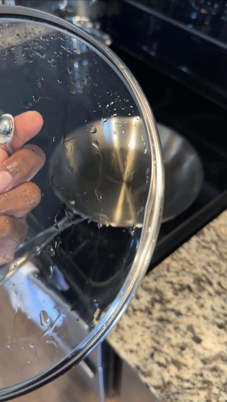 After cooking one time. Stains and scratches. Horrible quality.