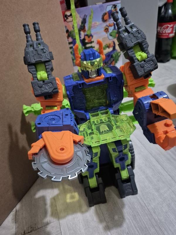The Transformers Cyberworld Scorponok Strike Battle Set is a bold, oversized toy that clearly puts fun and imagination first. Transforming from a towering robot into a massive scorpion battle playset, Scorponok immediately stands out thanks to its sheer size and presence. The conversion is quick and simple, making it easy for younger fans to switch between modes without frustration. What really sells this set is its interactivity. Lights and sound effects bring Scorponok to life, while the detachable weapons and accessories add plenty of battle themed play options. In scorpion mode, the figure opens up into a mini playset with spots designed to hold smaller Cyberworld figures, encouraging creative storytelling and extended playtime. The design is sturdy and colourful, clearly aimed at kids like mine that absolutely Transformers. Articulation and transformation complexity are kept to a minimum, which may disappoint older Transformers fans, but this simplicity makes it more accessible.