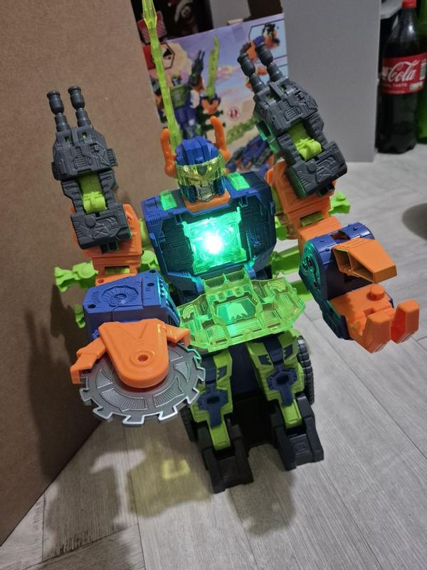 It’s a 2-in-1 Transformers toy: a 35 cm (14 in) robot that transforms into a 50.5 cm (20 in) scorpion playset.  Has lights and sounds: pressing the head activates lights in its chest and makes battle sound effects.  • Interactive battle features: • A spinning buzzsaw arm • A working claw arm • Fold-out battle stations in its chest and legs for Cyber Changers (smaller figures, sold separately). Accessories transform too: the scorpion tail becomes a double-blade sword, and the buzzsaw arm can turn into a hover-cycle.  Batteries: Comes with 3 × LR44 button cell batteries. Age recommendation: 6 years and up.Dual play mode: The transformation between robot and scorpion gives more play variety than a standard figure.Large size: At 50.5 cm in scorpion mode, it’s quite big — good as a center-piece or playset. Accessory-rich: With the detachable arms, fold-out stations, and transformable parts, you get a lot of play options.great for a present for birthdays or Christmas.