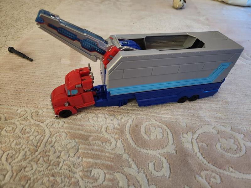Toy given as incentive in return of an honest review. The trailer in this toy opened up into a little headquarters that had guns attached to it and some that were detachable. The Optimus Prime goes from a toy, to a truck in 9 steps. I added it to my sons birthday gift this year and he absolutely loved it.